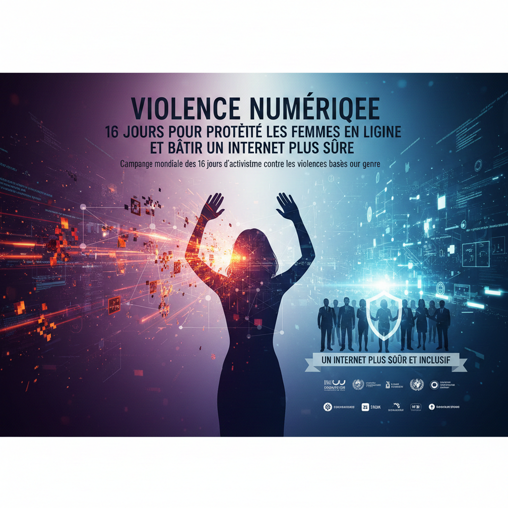 À l’occasion de la campagne mondiale des 16 jours d’activisme contre les violences basées sur le genre, plusieurs organisations internationales, institutions nationales et actrices de la société civile unissent leurs forces autour d’un thème central : « Tous Unis pour mettre fin à la violence numérique contre les femmes et les filles ».